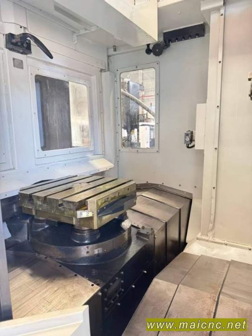 韩国原装斗山HM500双工位卧加 FANUC31i系统 BT50齿轮主轴6000转主轴中心出水,转台1度分三轴硬轨一体式床身, 40把刀库,行程:800/750/850mm 加工尺寸:850x1100mm 工作台尺寸:500x500mm
