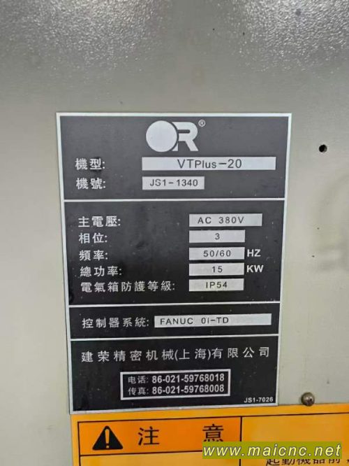 台中精机TV plus-20数控车床,发那科Oi-TD系统,X轴行程190mm,Z轴行程370mm,8寸卡盘,车削长度:320mm,主轴通孔:52mm,8工位刀塔,主轴转速:6000rpm。