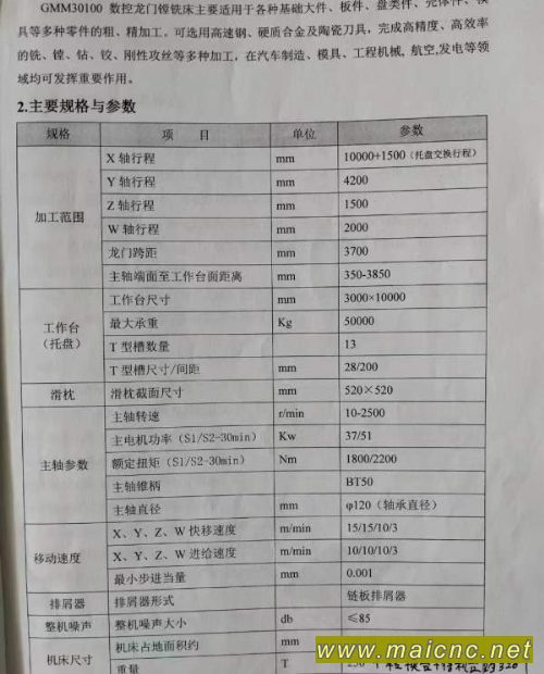 工厂闲置:三一重工龙门加工中心工作台310米,龙门过宽4米,主轴端面到工作台3.85米刀库60把,西门子系统,带一块310米附台主轴BT50,转速10-2500rpm,功率37.5kW设备在位,机器自重320吨