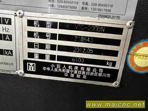 :马扎克立式加工中心VTC-200BN行程:1120510510mm工作台.
