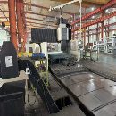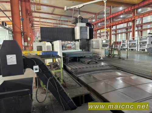 亚威6米龙门,工作台2.4米*6米,门宽2.7米,门高1.5米,32把链条式刀库,自动直角头。三轴行程6000*2500*1000。发那科MF系统,链条式排屑机