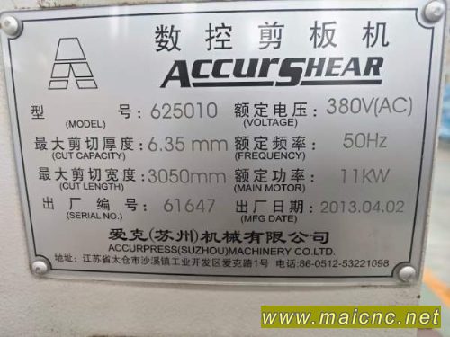 :洛阳仓库新春大酬宾出售2013年爱克数控剪板机,非常少.