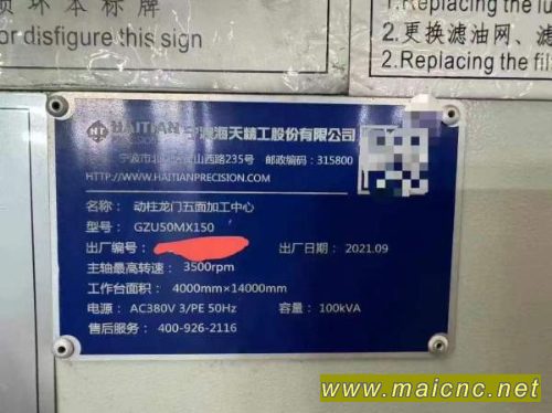 出售:22年到厂,海天15米动柱龙门加工中心,工作台4.